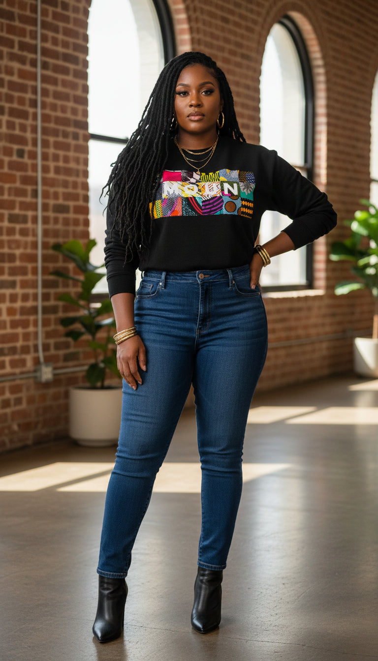 Chaque sweat nécessite un travail long et unique autour d'un patchwork qui sera par la suite floqué avec les 4 lettres du mot que vous préférez.